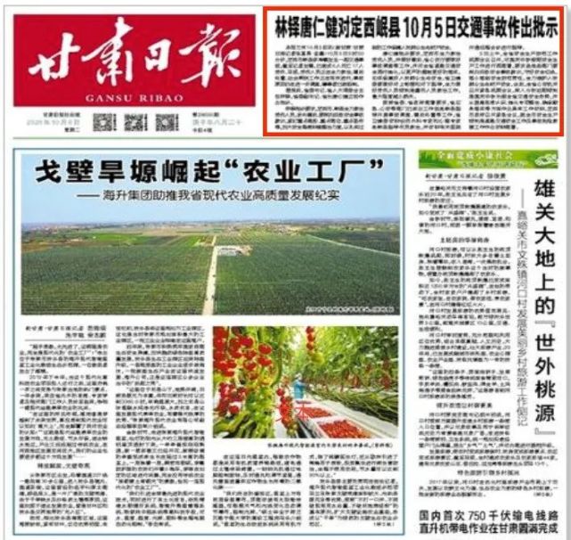根据最新报道,事件发生后,甘肃省委书记林铎、省长唐仁健作出批示。