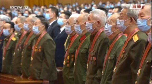 今天的纪念大会,有150名中国人民志愿军老战士胸前挂着满满的军功章和奖章在观众席前排中央就座,他们中还有20位是功勋老战士。