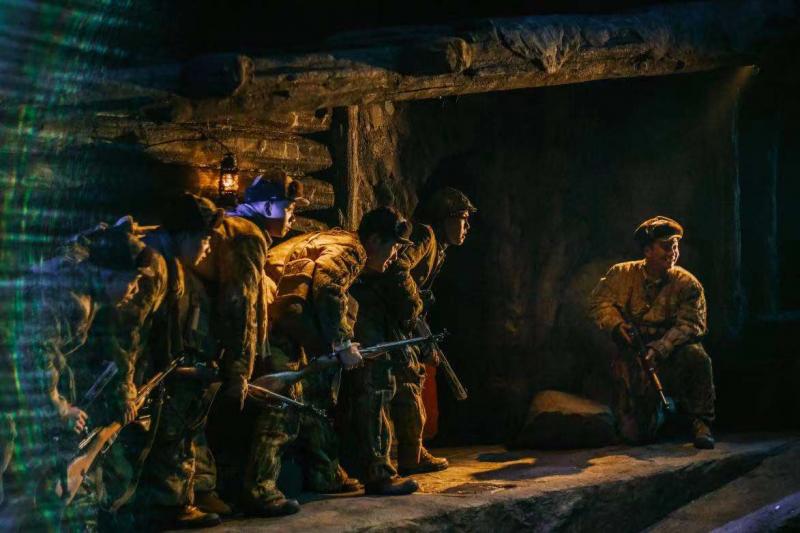 本届“全国话剧展演季”开幕大戏由红色史诗话剧《上甘岭》担纲。作为一部彰显家国情怀与民族精神的主旋律大制作,话剧《上甘岭》并不是对电影《上甘岭》的舞台平移,而是重新挖掘中国抗美援朝战争中有名有姓的烈士事迹,抱着回望历史、再造经典的决心创造的全新戏剧故事。