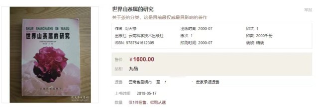 闵天禄去世的消息发布后,不少植物、园艺爱好者纷纷表示哀悼。近日,有网友注意到,闵天禄在2000年左右出版的著作《世界山茶属的研究》一书被炒到了“天价”,网友发布的信息显示,在一家二手书网络商城中,有商家将《世界山茶属的研究》标出了800元的高价。而3月10日,北青-北京头条记者检索时发现,有商家更是把该书炒到了1600元的“天价”。