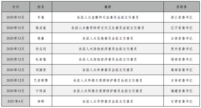 据政知君不完全统计,去年10月以来,至少有9位省级党委书记卸任,到全国人大工作。