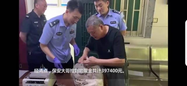 近日,重庆渝北区一位农贸市场的保安大叔捡到近40万元人民币现金后报警。双龙派出所民警成功找到失主。原来,这笔钱是工资款,而失主过了一夜才意识到钱丢了。