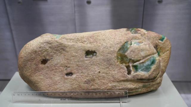据公告介绍,此次拍卖的玉石毛料所有人是云南恒皓投资有限公司,玉石毛料最长处超过30厘米,厚度超过10厘米,表面多处可见绿色。
