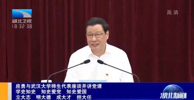 应勇说,全省广大青年要传承好红色基因,坚定理想信念,热爱祖国,永远跟党走;赓续精神血脉,以德立身,锤炼高尚品格;胸怀“两个大局”,敢于担当,勇于创新创业创造;志存高远,脚踏实地,在真刀真枪的实干中成就事业。
