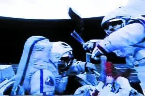 2008年9月27日,在刘伯明和景海鹏的协助和配合下,翟志刚顺利出舱,成功实现中国首次太空行走。