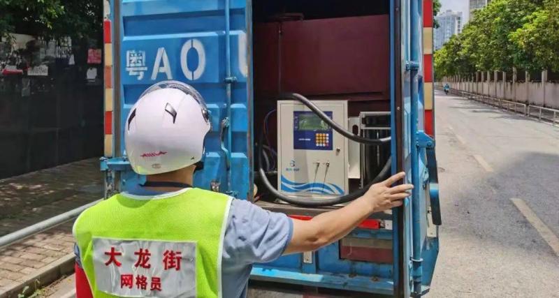 7月15日上午,由大龙街来穗中心、网格办、大龙派出所、石岗东村治安联防队等部门组成联合行动组在石岗东村开展交通安全整治行动,接到群众举报称该村某路段存在非法流动加油行为。