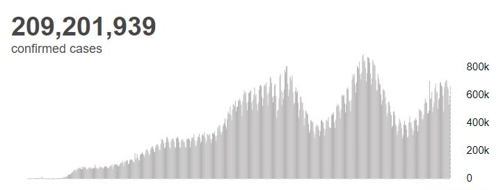 世卫组织:全球新冠肺炎确诊病例超过2.092亿例