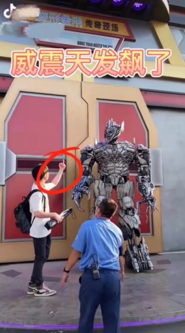 游客向威震天竖中指被怼“肮脏的人类”,北京环球影城回应:暂时不会拉黑名单