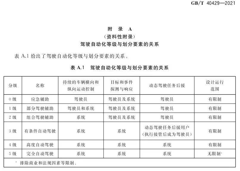 日前,市场监管总局(标准委)集中发布了一批重要国家标准,其中就有针对自动驾驶功能的《汽车驾驶自动化分级》国家推荐标准(GB/T 40429-2021)。据悉,该国标将于2022年3月1日正式实施。