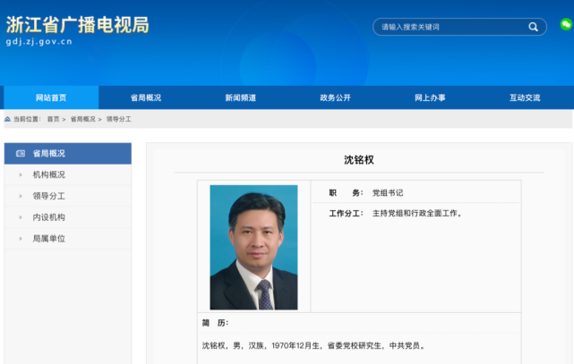 政知君注意到,沈铭权已任浙江省广播电视局党组书记。