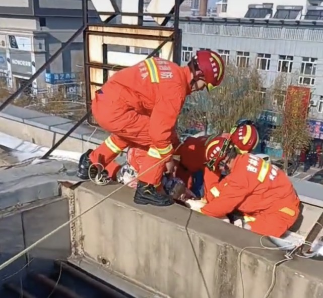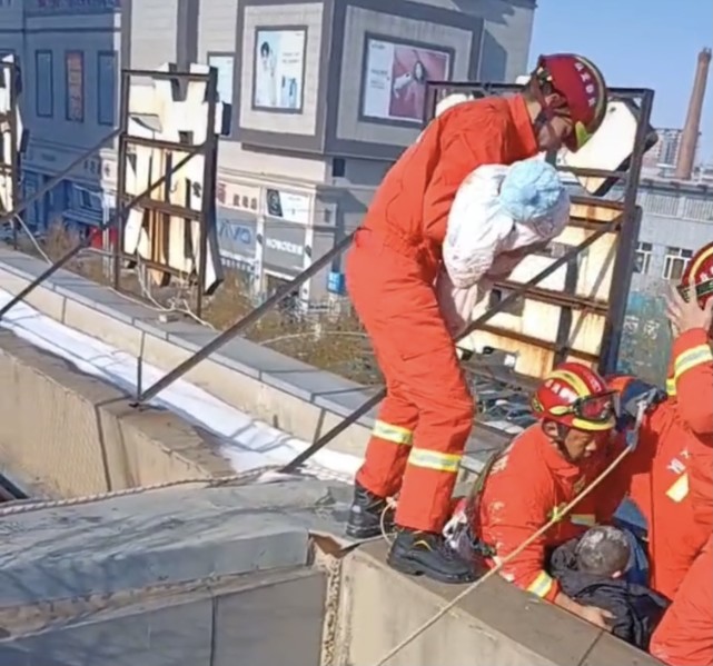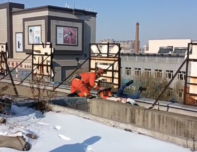 董志辉称,当时是自己和另外4名队友前往楼顶进行救援,商量后决定由自己绑定安全绳索上前救援。董志辉介绍,到楼顶后他一边安抚女子情绪,一边想趁机扑过去救援。“她坐的地方有铁皮,上面有积雪很滑,这个女子情绪激动一直在大喊身体左右摆动,她怀里的婴儿随时有坠落危险。”董志辉说,他必须得快。