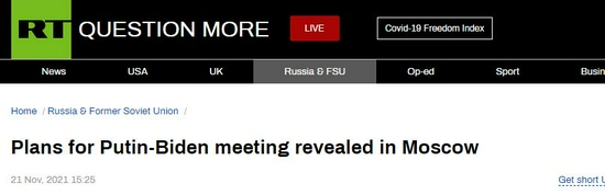 RT称,华盛顿在最近的评论中没有提到会面的任何时间表。白宫新闻秘书珍•普萨基当地时间11月18日表示,她不排除拜登在“未来的某个时刻”与普京对话的可能性,但她表示,关于两位领导人之间的接触,她没有要宣布的消息。