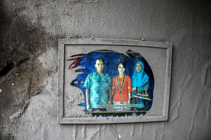 12月6日在印度尼西亚东爪哇省卢马姜一处民宅内拍摄的悬挂在墙上的照片。