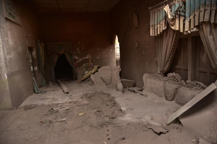 12月6日在印度尼西亚东爪哇省卢马姜一处民宅内拍摄的被火山灰覆盖的房间。