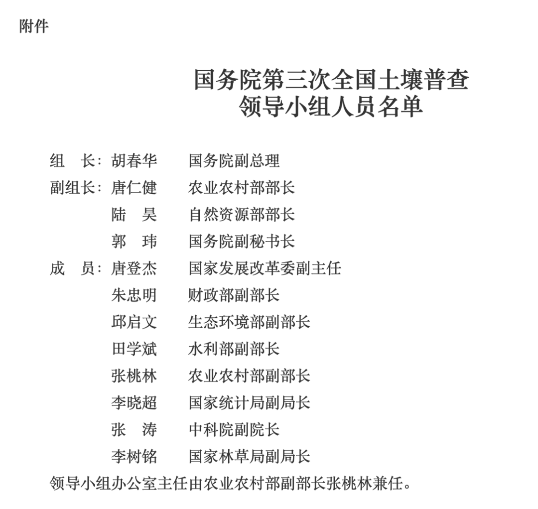 为加强组织领导,国务院成立第三次全国土壤普查领导小组,负责普查组织实施中重大问题的研究和决策。