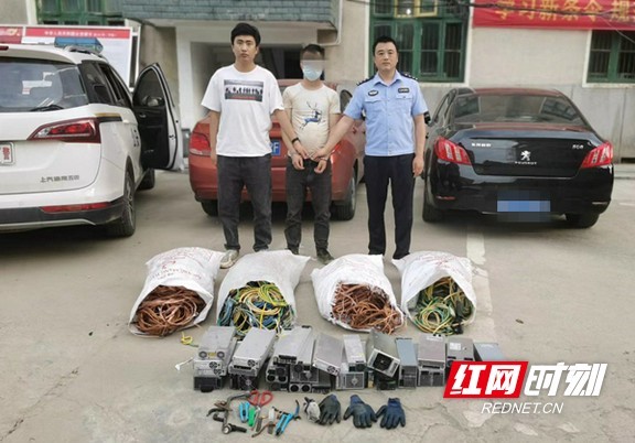 4月25日,民警发现该车又在桃江境内出现,当即展开行动。11时许,民警将正在开车踩点的犯罪嫌疑人曾某龙抓获,在其车上搜查出电源模块2块,后又在其家中搜出剥皮铜芯线110余斤、电源模块29块。
