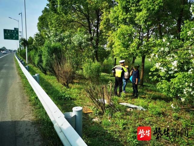 5月12日上午8时许,南京高速五大队交警在辖区机场高速巡逻时,发现两名男子正在高速路边的草丛里走动,便立即设好警示标志,上前查看。