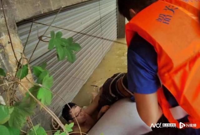 粤北韶关暴雨袭城 民警解救被困民众