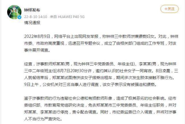 湖北钟祥通报教师涉嫌猥亵妇女事件