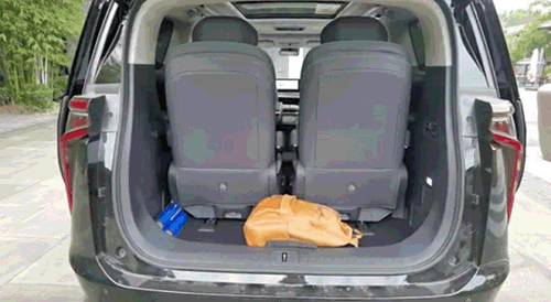 满员情况下,行李箱可放下32+26+20寸行李箱,如果行李空间需要继续扩大,一键启动“行李空间模式”,第二、第三排自动前移,释放最大2179升行李空间。