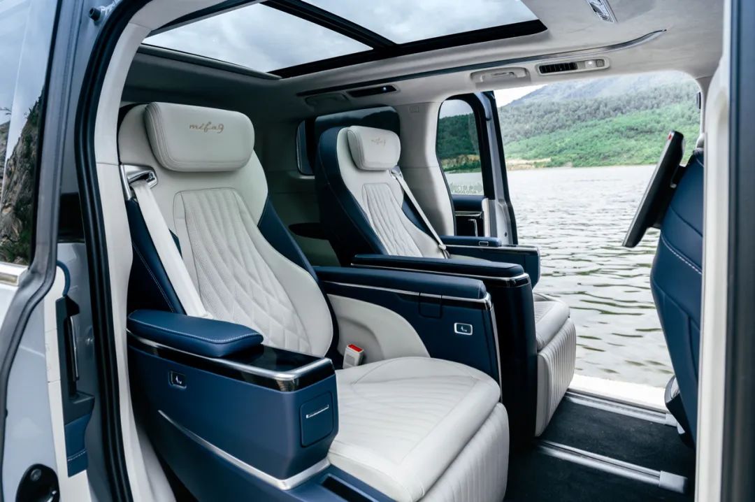 MIFA 9更注重第三排乘客的感受,6座版车型第三排拥有两个独立的航空座椅,且全车六个座椅均支持电动调节,创造性地采用独立电动滑轨座椅,舒适度要远超于三连坐的“小沙发”,能以非常正常的坐姿坐立,同时配以通风、加热、按摩、腿托、充电、空调、杯托等功能。