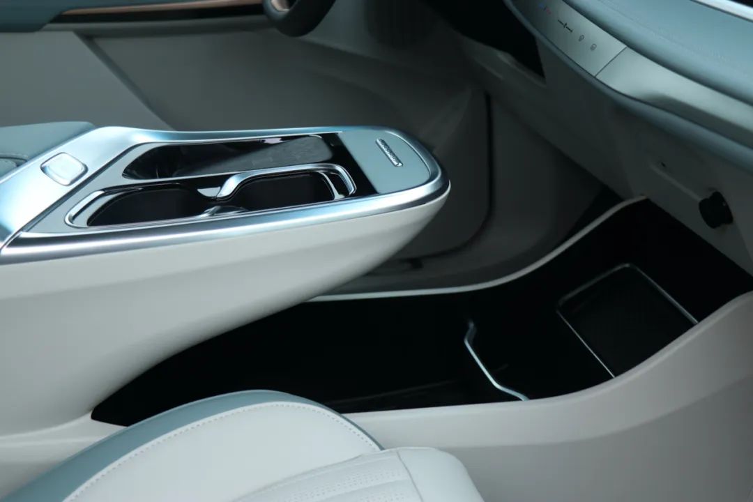 MIFA 9前排没有采用左右贯通式设计,但中央通道区域拥有更实用的开放式储物槽,储物空间非常丰富。中央扶手采用悬浮岛设计,使得大件物品取放更加从容,该区域也拥有无线充电与杯架设置。