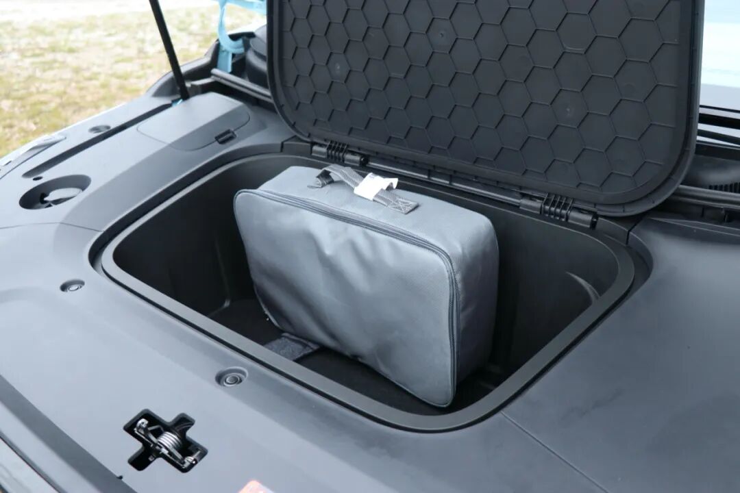 第二点,作为一台新能源车,前机盖下方拥有55L前备箱空间是很实用的,但是前备箱盖连接处是没有阻尼设置的,只有开和关,且角度较大。可以在翻盖连接处增加一个带阻尼的装置,都是防火塑料材质,成本也不会过高,能大大提升细节上的质感和使用便利性。