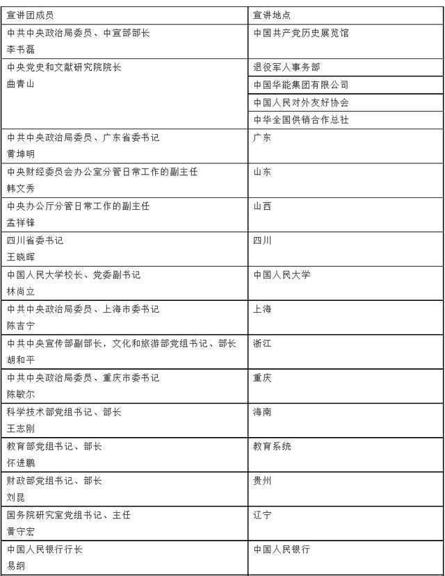 据政知君不完全统计,按出现在公开报道中的时间,目前披露的中央宣讲团成员有: