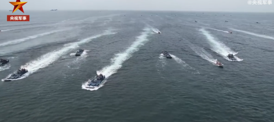 政知道注意到,视频披露的演练中,水上、空中、水下三栖作战力量轮番登场: