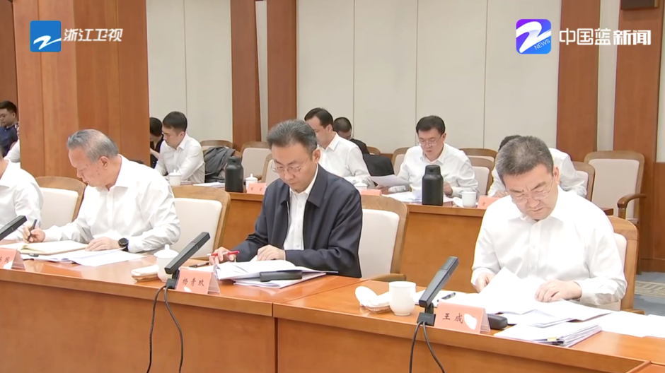 《浙江新闻联播》电视画面显示,杨青玖出席会议,坐在浙江委常委、政法委书记王成国和浙江省高级人民法院党组书记、院长李占国中间。