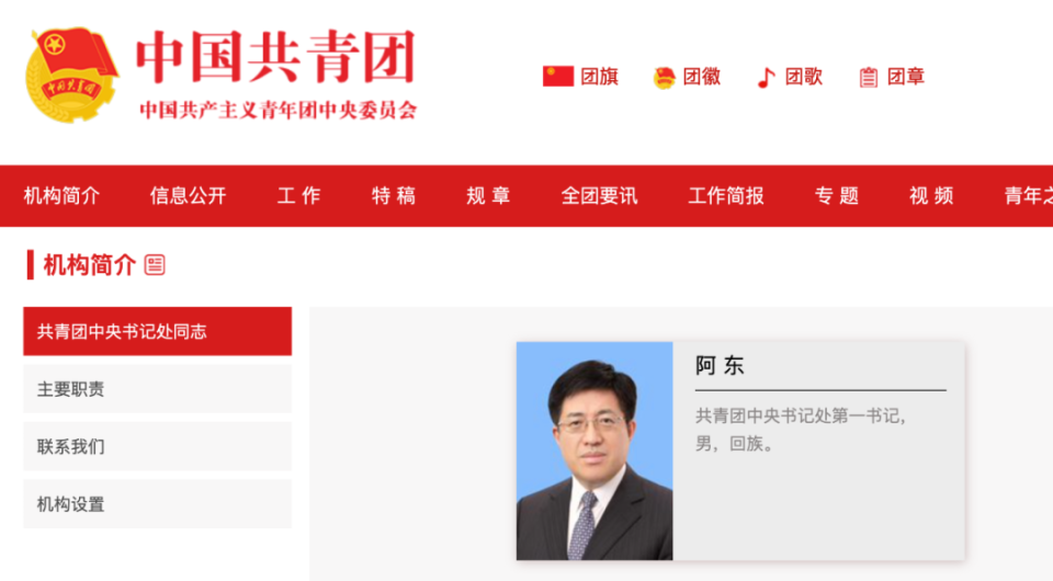 5月31日,政知君注意到,中国共青团官网更新显示,阿东已经出任共青团中央书记处第一书记。
