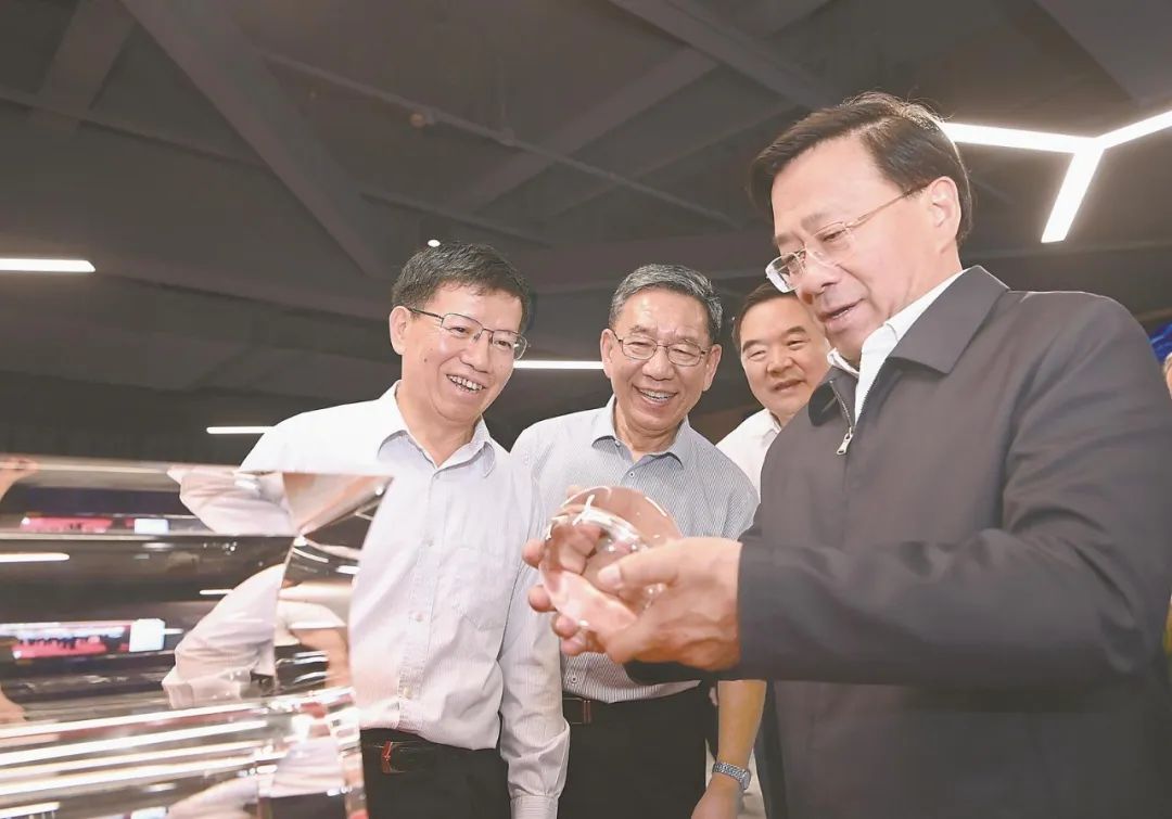 6月7日,安徽省委书记韩俊在深空探测实验室科技展厅,仔细观看航天实物展品,了解航天文化宣传、科普教育情况 杨竹/摄
