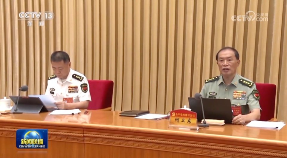 《新闻联播》披露了此次全军党的建设会议的现场。中共中央政治局委员、中央军委副主席何卫东出席会议并讲话。