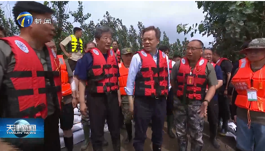 8月12日,陈敏尔、张工在静海区检查防汛抗洪救灾工作,期间前往茁头排干西堤察看情况;