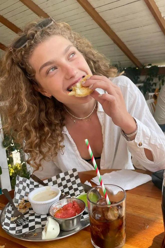 比如钟楚曦5月底去意大利参加 Louis Vuitton 早春大秀时给自己 DIY 的这个卷发造型,搭配吊带裙装,有种帅气的美。