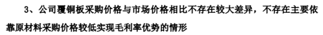 龙腾电子却在列出了一系列数据后表示,公司覆铜板采购价格与市场价格相比不存在较大差异,不存在主要依靠原材料采购价格较低实现毛利率优势的情形。