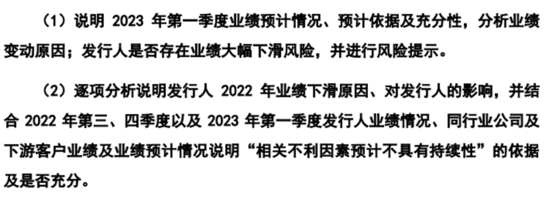 对此,交易所在第三轮问询中再度要求公司说明,2022年业绩下滑的原因,以及导致业绩下滑的不利因素“预计不具有持续性”的依据。