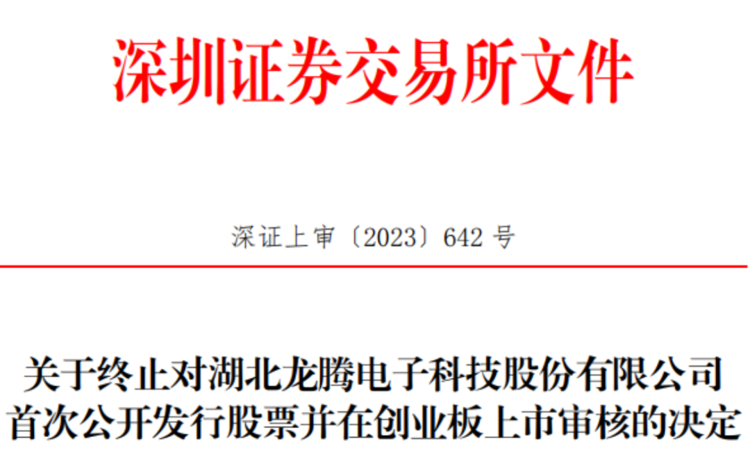 8月29日晚间,深交所更新发行上市审核信息,由于公司及保荐机构申请撤回上市申请文件,交易所决定终止龙腾电子创业板IPO审核。