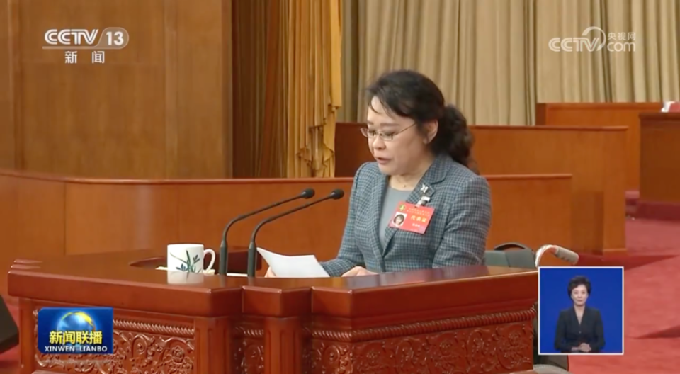 中国残联主席张海迪代表中国残联第七届主席团向大会作报告。