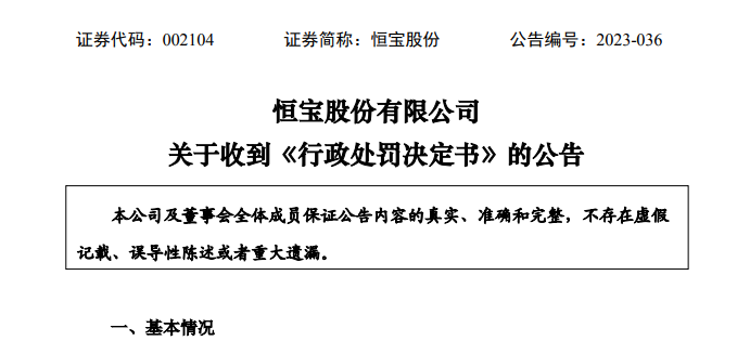 一、对恒宝股份有限公司责令改正,给予警告,并处以500万元罚款;