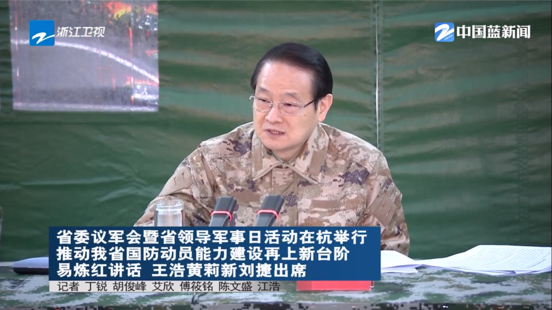 据《浙江日报》报道,12月15日,浙江省委书记、省人大常委会主任、省军区党委第一书记易炼红,省委副书记、省长王浩,省政协主席黄莉新,省委副书记刘捷和浙江省四套班子其他领导来到浙江工商大学人民武装学院,集体过军事日并出席浙江省委议军会。
