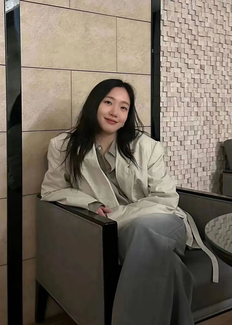 有网友说:“金高银的衣柜是‘淡人’的天堂”,很少有时下纷繁复杂的叠穿和不停更新换代的各种风格,永远都舒适、简单又自然大方,淡人默默在心里记下她的穿搭。春秋季节一件米白色风衣内搭灰棕色衬衫和牛仔裤,舒适自在的一身搭配。