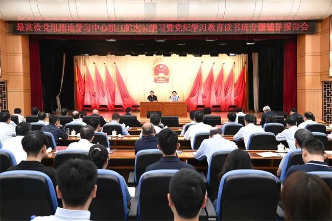 一年前,2023年7月4日,最高检举行党组理论学习中心组(扩大)学习暨学习贯彻习近平新时代中国特色社会主义思想主题教育专题辅导报告会。