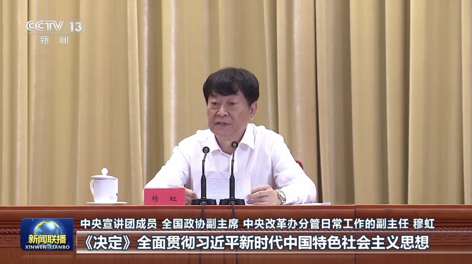 新华社报道显示,穆虹的报告紧紧围绕习近平总书记在党的二十届三中全会上的重要讲话和全会《决定》,阐明了进一步全面深化改革、推进中国式现代化的时代背景、历史方位和使命任务,阐释了进一步全面深化改革的指导思想、总目标和重大原则,对《决定》提出的重要改革创新举措进行了重点解读,并就贯彻落实全会精神和改革任务谈了认识体会。