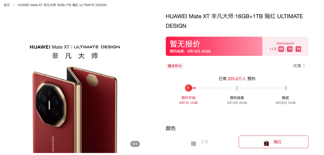 作为一款颠覆性、创新性产品,华为Mate XT非凡大师一开启预定,便遭全网抢购,目前全网预约人数已超过225万。