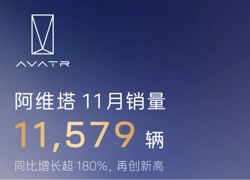 阿维塔旗下SUV阿维塔07今年9月26日上市,该车型上市后,阿维塔的销量迎来爆发式增长。阿维塔12月1日早间公布,11月该品牌汽车销量达到11579辆,同比增长超过180%,再创新高。