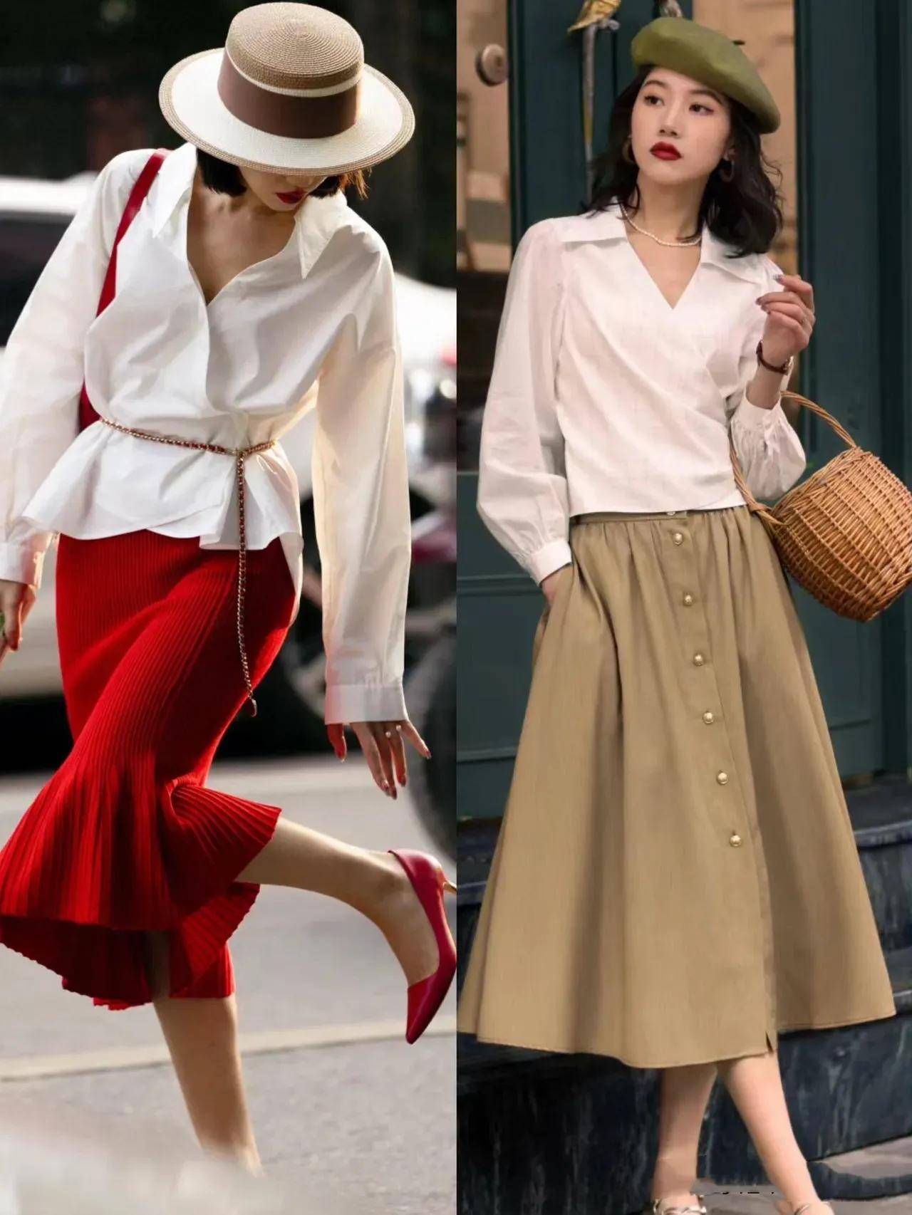 暖和的春季少不了就是一件好看的衬衫,咱们今天不妨来看一下素人博主们都是如何把衬衫穿出高级感的衬衫搭配裙子和长裤又有什么区别?应该如何穿?例如下面这两套穿衣打扮就很接地气,一件白色的衬衫搭配上黄色的开叉半身裙或者是黑白条纹的伞状半身裙,脚踩双粗跟的前后单鞋,这两套穿衣打扮给人的感觉就很通勤时髦,穿去上班逛街约会都完全没有问题。