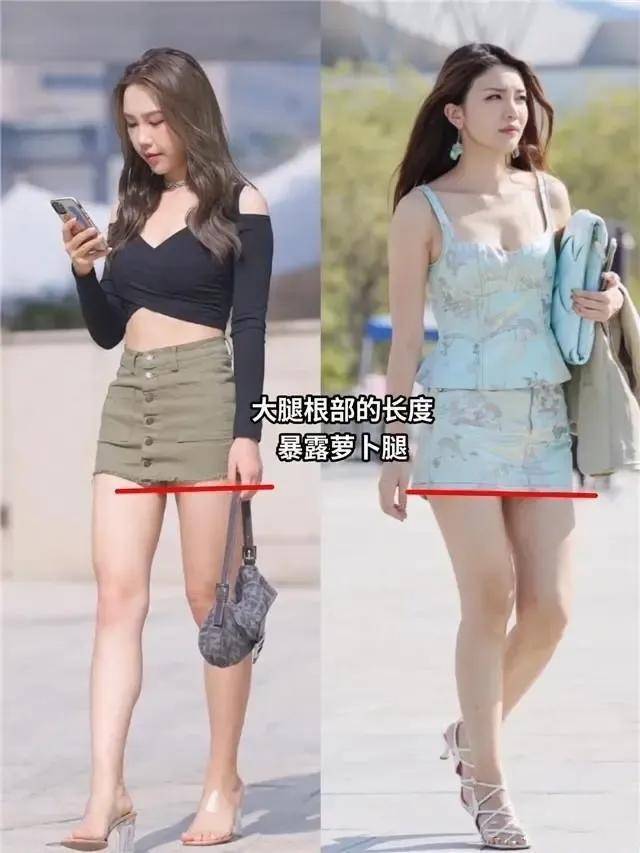 当然,有一部分人群虽然年龄不大,但是骨架比较大,同时有大象腿,这个时候选择短裙来穿搭,甚至露脐穿搭其实不太适合,咱们就看下面这样的穿搭方式,用短款的黑色上衣搭配上一条短裙,暴露了萝卜腿,虽然没有显得土里土气的,但是并无法展现出那种精致的高级感。