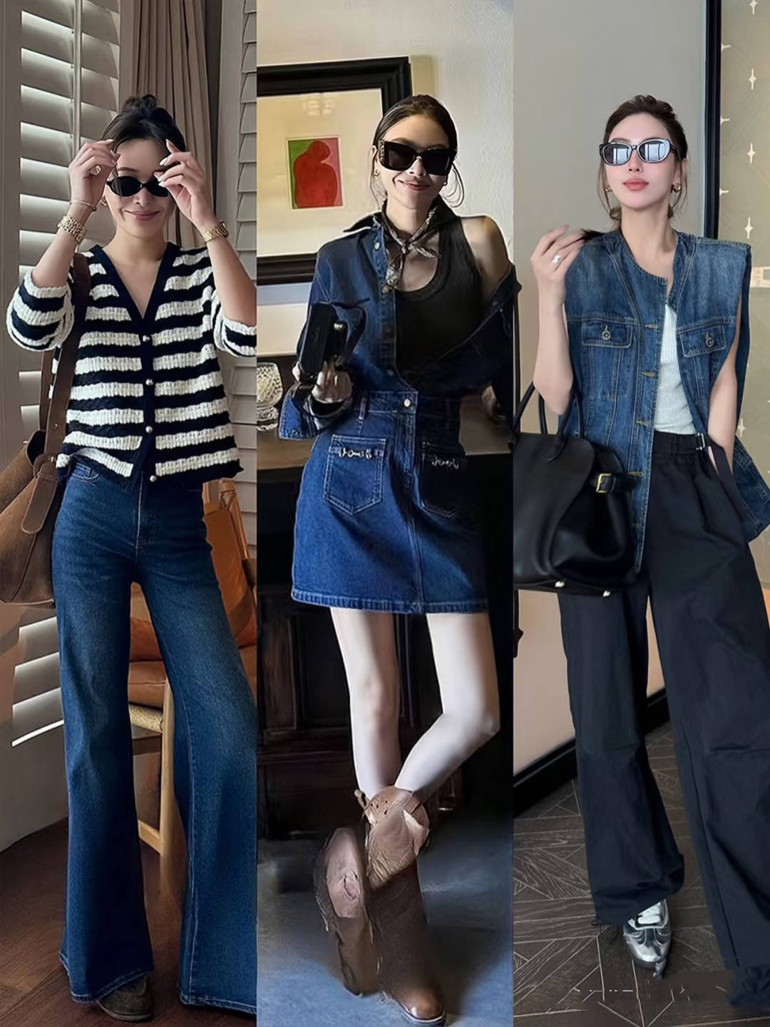 牛仔元素很个性,也有一种非常独特的气质美。与金属元素碰撞,更加时髦火辣。与细腻似锦搭配,更加温柔优雅。