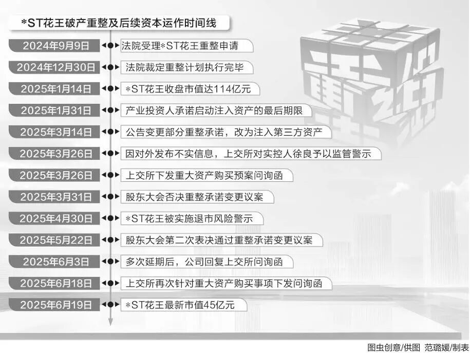 针对文中提出的关于破产重整承诺变更和最新资产重组方面的疑问,证券时报记者通过电话和邮件方式向*ST花王寻求采访,截至发稿,未获回应。